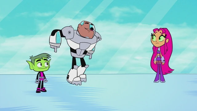 - Beast Boy's human strength is questionable as he effortlessly broke Robin's staff in "Staff Meeting", which is supposedly made of collapsible steel.