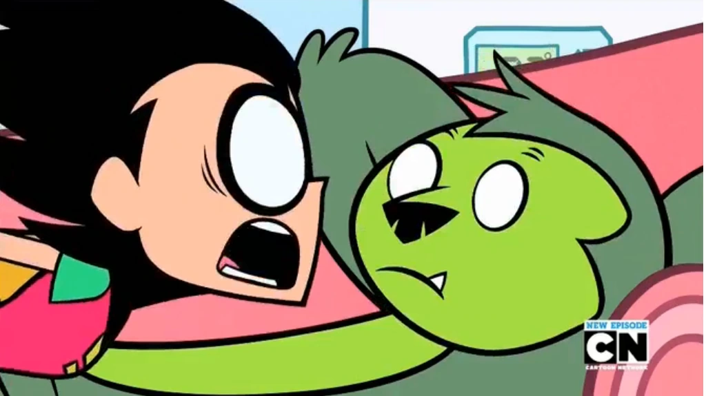 - Bean Bag: Beast Boy turned into a bean bag and suggested that Raven sit down on him.