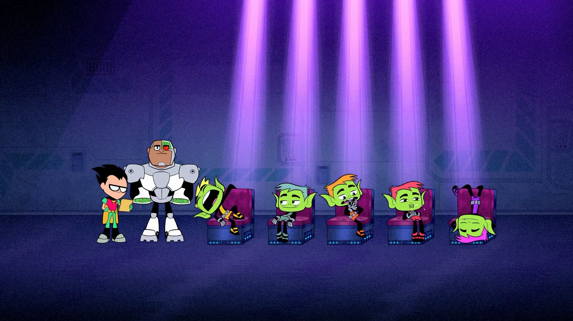 - In "In and Out", Beast Boy's outfit when going by his villain personality Beast Bob is an outfit from the New Teen Titans comics.