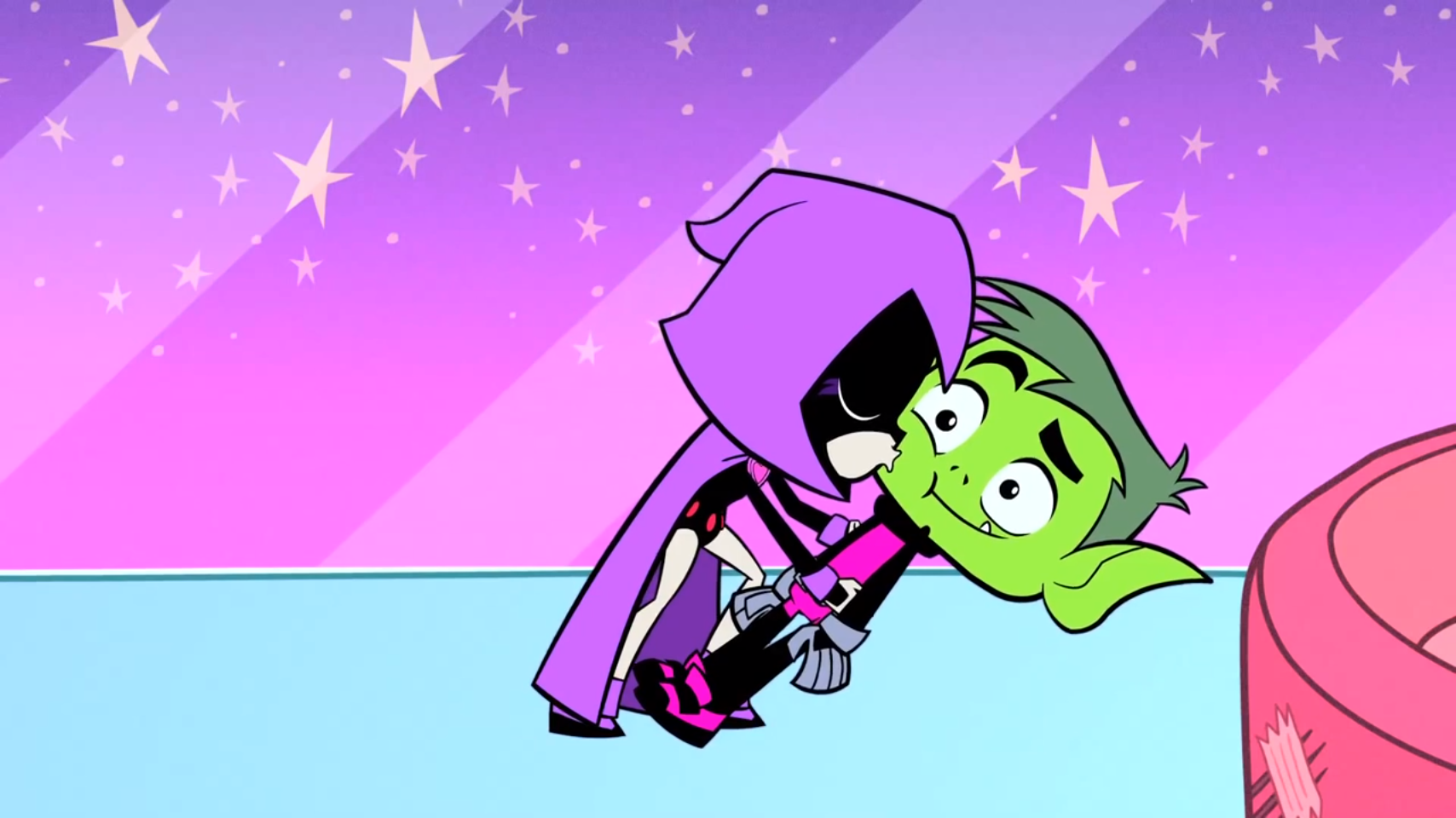 Throughout several episodes, he seems to be particularly close with teammate Raven. The two seem to share sometimes a somewhat mutual, flirtatious relationship, although Beast Boy seems to be unaware of Raven's romantic feelings for him at first. Later it is revealed in "Pirates" that he returns those same feelings for her. Then in "Rocks and Water", Beast Boy shares his actual first kiss with Raven to where she admitted it was "nice". In "Hey You, Don't Forget about Me in Your Memory", he told romantic events that happened between him and Raven over the summer which shows his strengthen feelings for her that possibly show wishful thinking. Their initials also has been engraved or written on several items including the R shaped chair from "Oil Drums", the tree from "Hey You, Don't Forget about Me in Your Memory", one of the paper heart cut-outs on the wall from "How 'Bout Some Effort", and in "Rocks and Water', the words "BBRae 2014" appear on the 'Awkward Moment' screen.