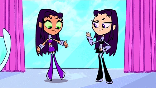 Blackfire dresses her little sister up to look just like her so they can be "twins-es."