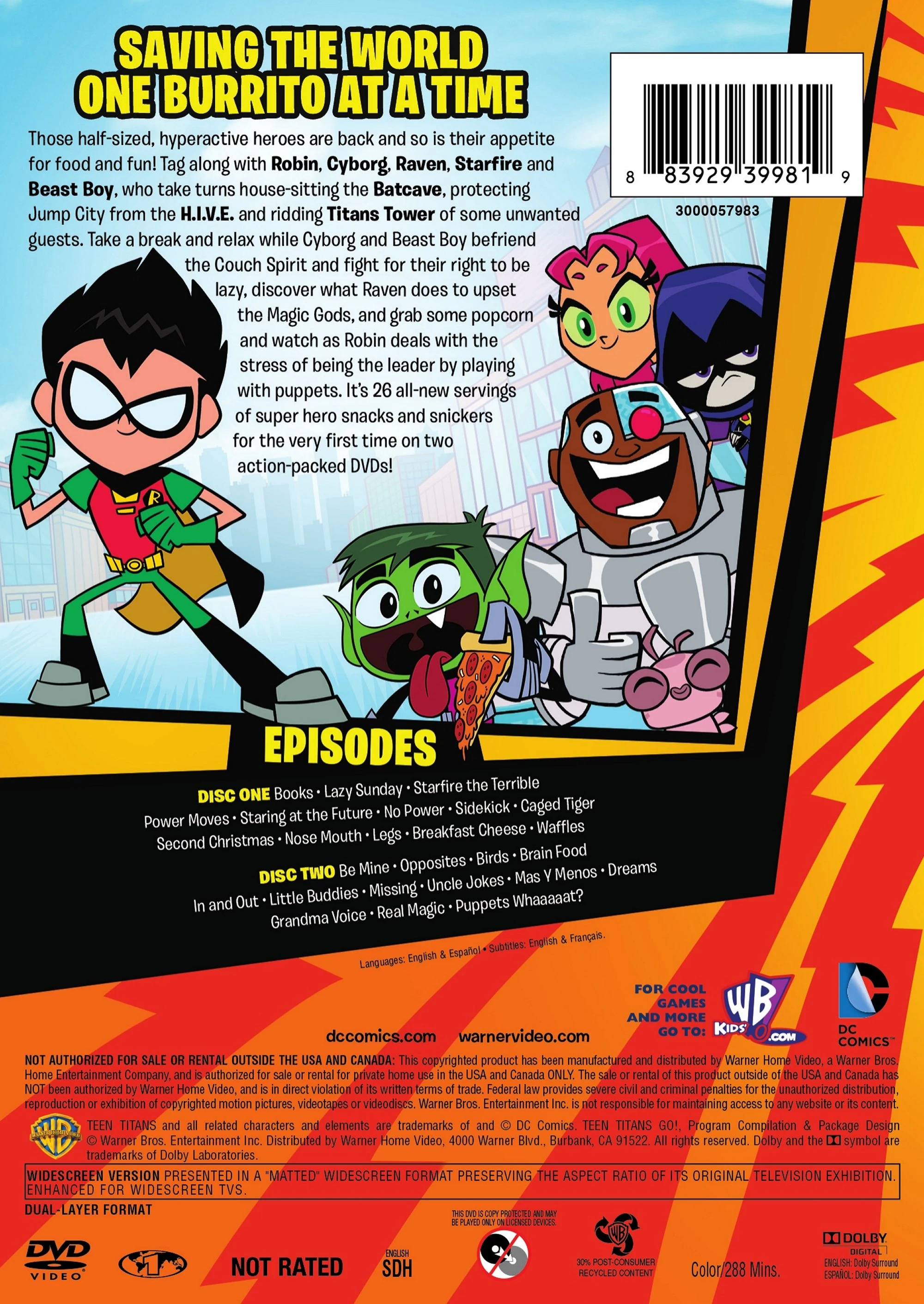 Couch Crusaders is the second DVD release of Teen Titans Go! containing 26 eleven-minute episodes from the first season. It was released on July 29, 2014.