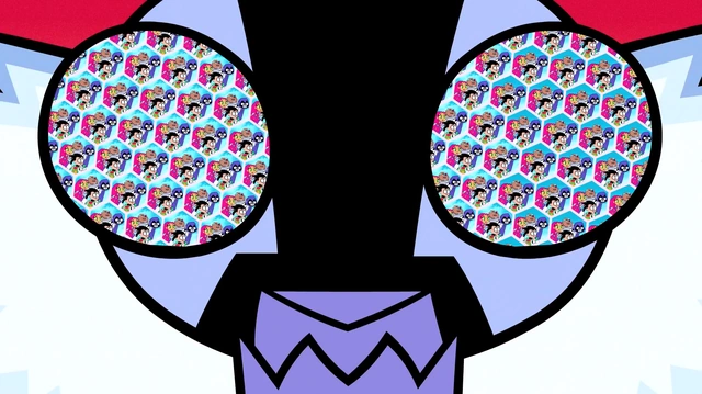 Killer Moth asks if they're saying looks don't matter and he compares it to walking into a stinky bathroom and saying smells don't matter when they do. Robin says that they won't believe his twisted lies. Killer Moth protests that people have judged him off his looks his whole life which is why he became a super villain in the first place. In the background, the giant pill bug continues attacking Jump City. Starfire approaches Killer Moth saying he does not know the story of the ugly duckling. He says he does, but highlights the fact that the duckling was only accepted once he became a beautiful swan and only hung out with beautiful people from then on. The Titans are confused, but Raven believes that Killer Moth is saying that ugly things need to be with their own kind. Killer Moth protests, but Cyborg says that must be the reason they throw up when they see Beast Boy. The bug squirts fluids and Raven summons trash cans for the four to throw up in. Starfire says that since Killer Moth and Beast Boy are both gross, they belong together and shoves him into the villain's arms. Before Killer Moth can protest, the Titans pack into the T-Car, Robin tells them to have a happy disgusting life, and they drive off. Killer Moth claims that they only believe looks don't matter because they're all good-looking and decides to show them a world where everyone looks like him and Beast Boy so that looks truly do not matter.