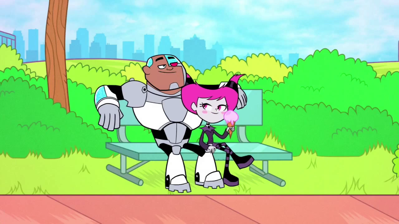 In Rocks and Water, Cyborg is a a "third wheel" on Robin and Starfire's date, where he ends up ruining any romantic chance the two had together alone by being in the middle of everything.