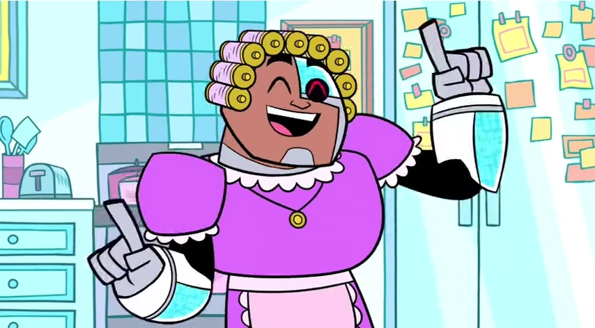 - Cyborg's love for meat in the original series is kept in this series, but his disgust for tofu apparently is not, as he went along with Beast Boy's plans to eat tofu chips as best friends in Double Trouble.