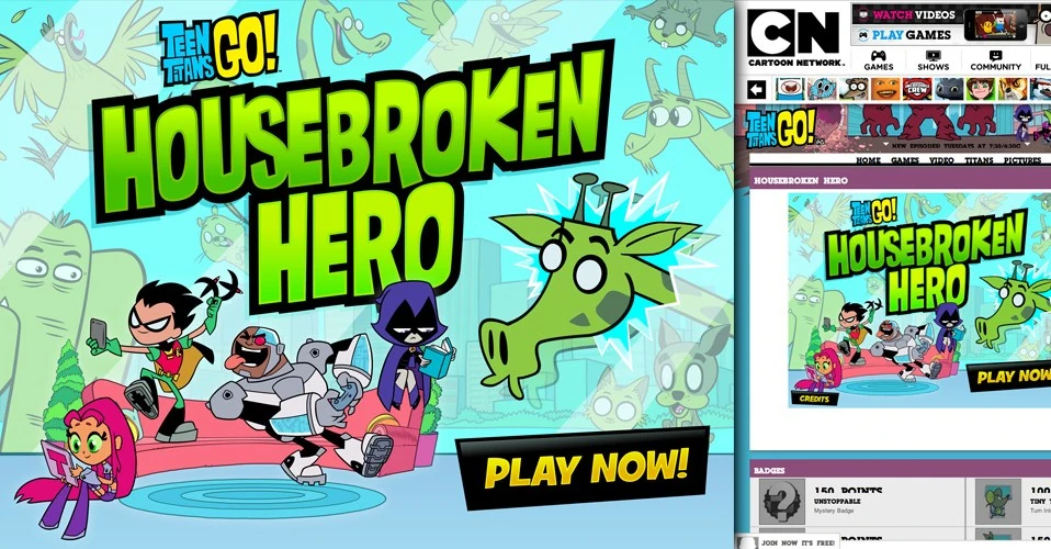 Housebroken Hero is the second Teen Titans Go! online game on the Cartoon Network website. The game has five badges you can earn.