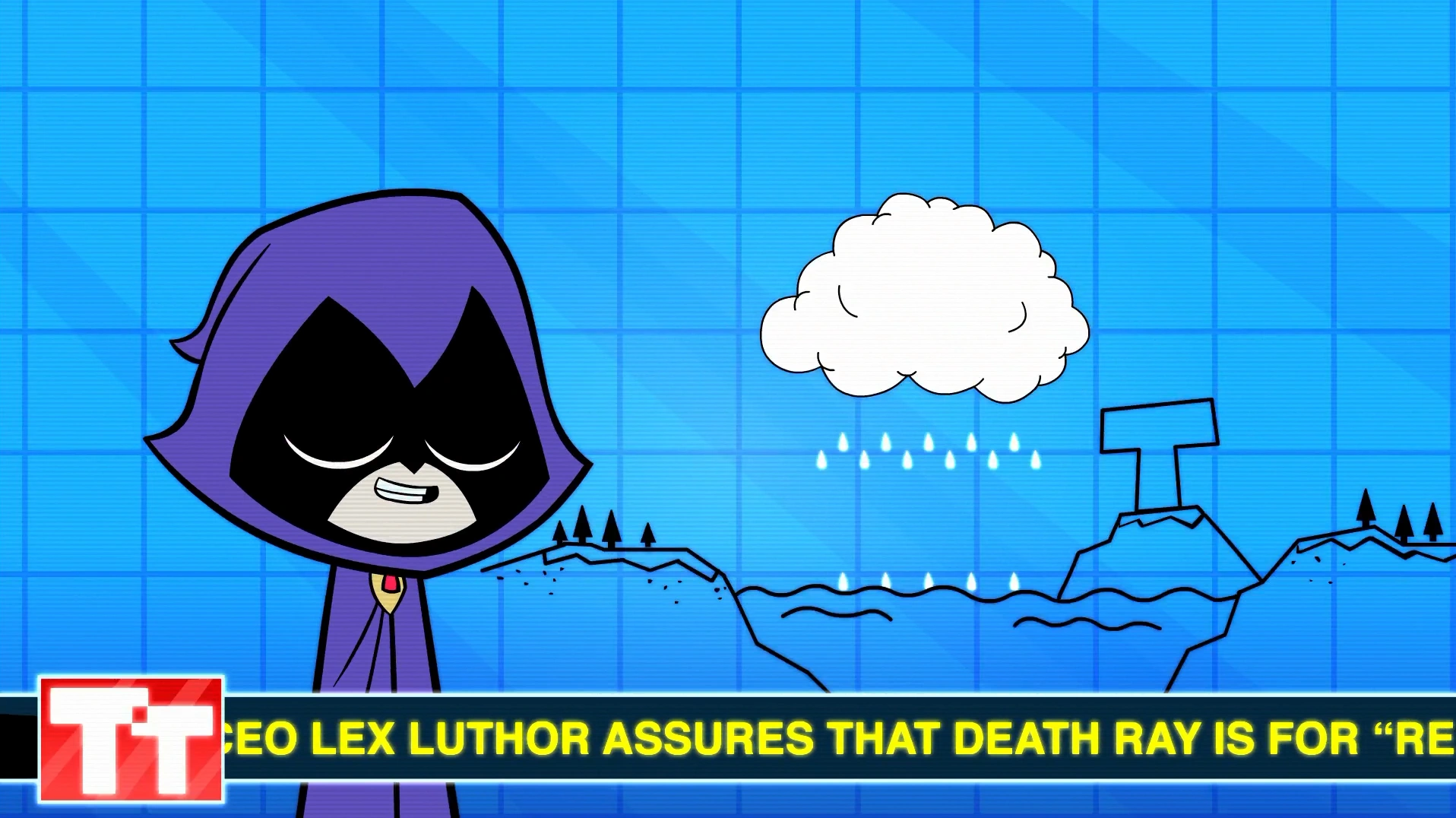 - Lex Luthor and LexCorp are mentioned at the bottom when Raven says how rain is formed.