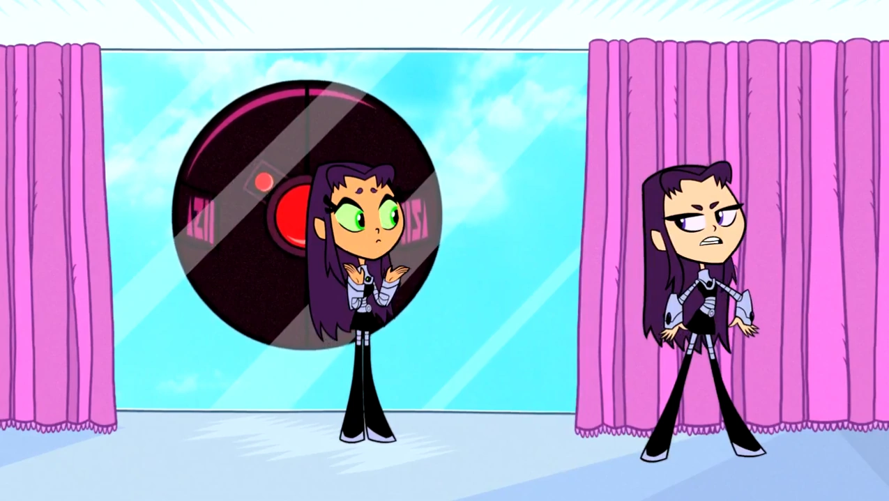 - Starfire destroyed the mannequin that Blackfire shows her, but it reappears when Blackfire shows Starfire her doll. It then disappears again when Blackfire says that she changed.