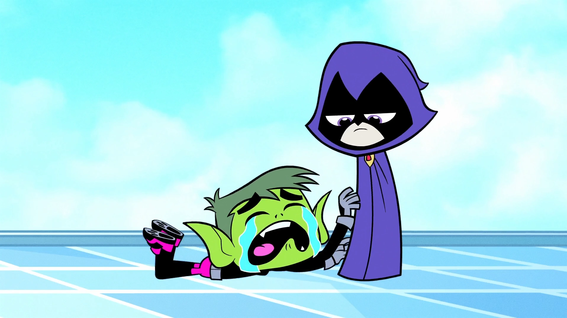 Raven gives Beast Boy one final peek at her legs.