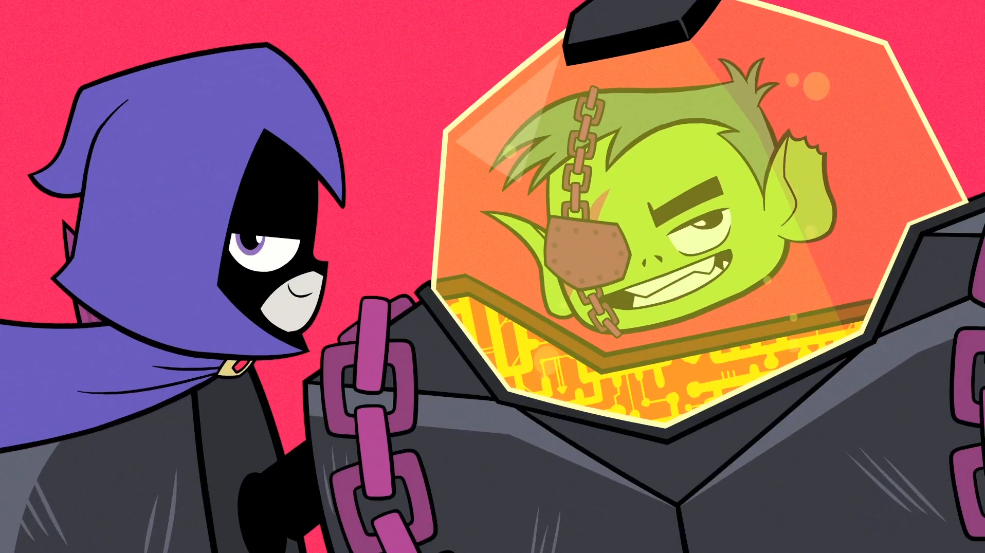 Raven romantically enamored by Beast Boy's new look as "Scar Man".