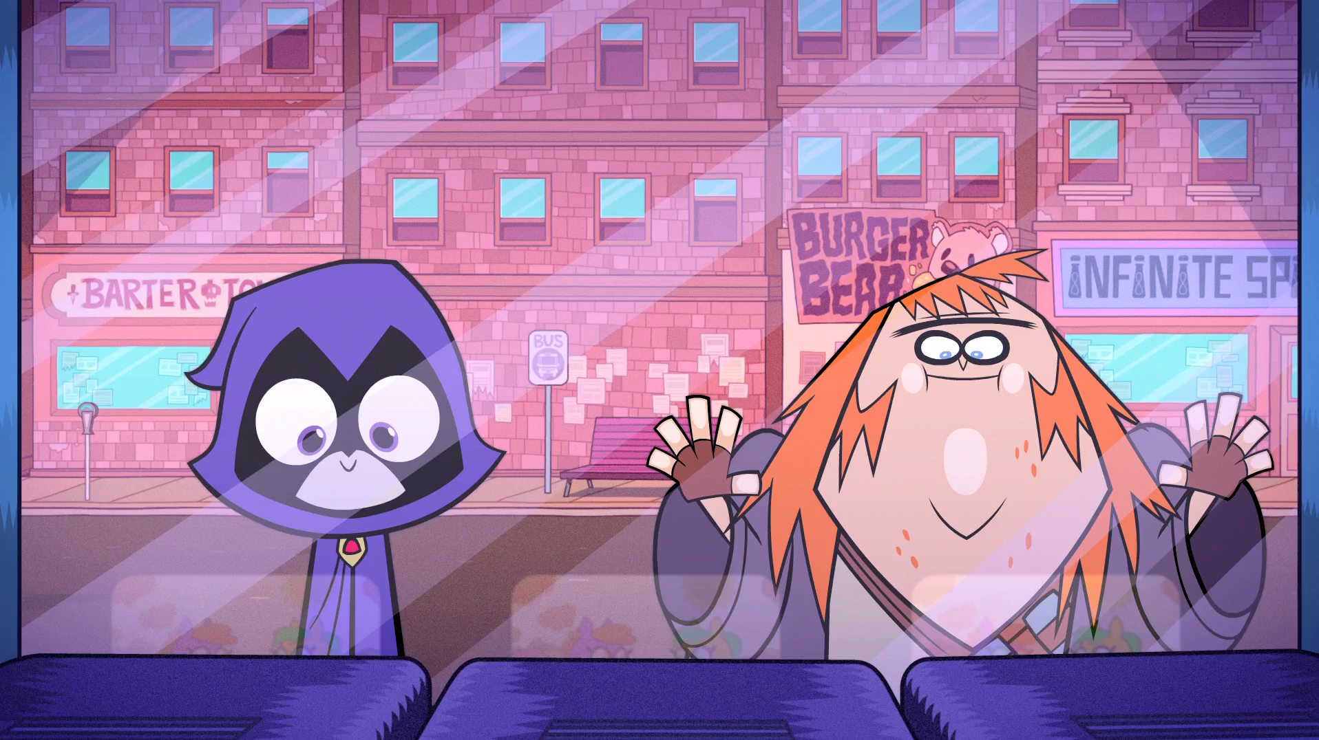 In "Salty Codgers", Beast Boy calls Raven "hot stuff" and also calls her beautiful while giving her a flirtatious wink. At the request of Robin in the episode "Hot Garbage", Raven attempts to teach Beast Boy lessons on how to pick up garbage and be more clean, and throw away useless items, which ended up failing.