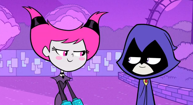 - In the newer episodes, starting with "Real Boy Adventures", Raven begins to become funnier and smiles a lot more. This is also clearly stated by Robin in "Let's Get Serious".