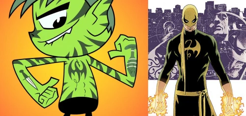 - Few of Beast Boy tattoos were a scary cat face from the Japanese 1977 horror film House (Hausu) and Iron Fist's dragon logo from Marvel's The Ultimate Spider-Man. Both Iron Fist and Beast Boy were voiced by Greg Cipes.